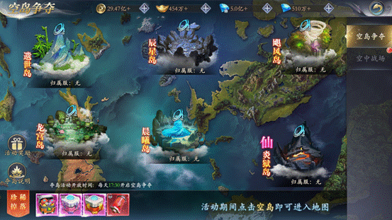 1.活动开启后,开放6座空岛场景,供九州内所有大侠进行争夺,空岛内气候险恶,大侠需要拥有至少一个装甲且,凤、林、火、山、虚空属性达到空岛进入要求后,才可进入空岛